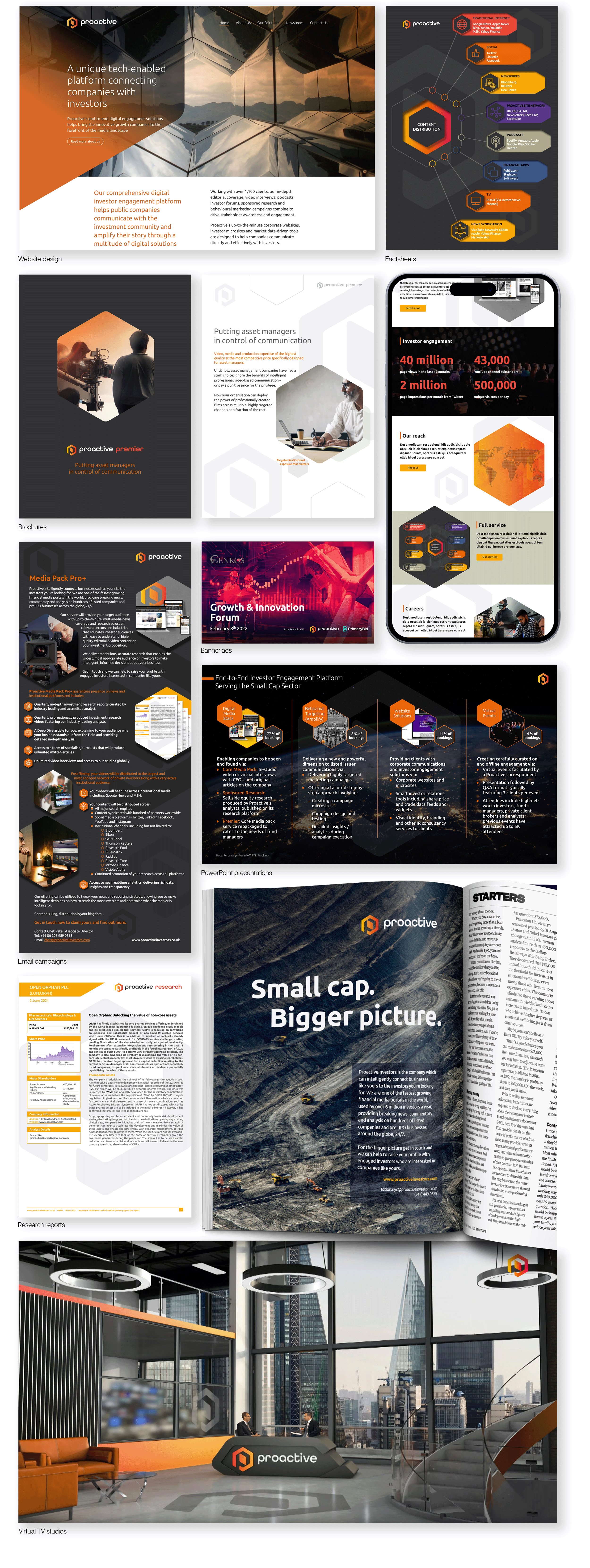 I led the full rebrand for Proactive, a huge undertaking that evolved from a new logo into a complete ecosystem. I designed the website and virtual TV studios, while building the sales collateral and social frameworks their teams use daily. The project solved two core challenge.
